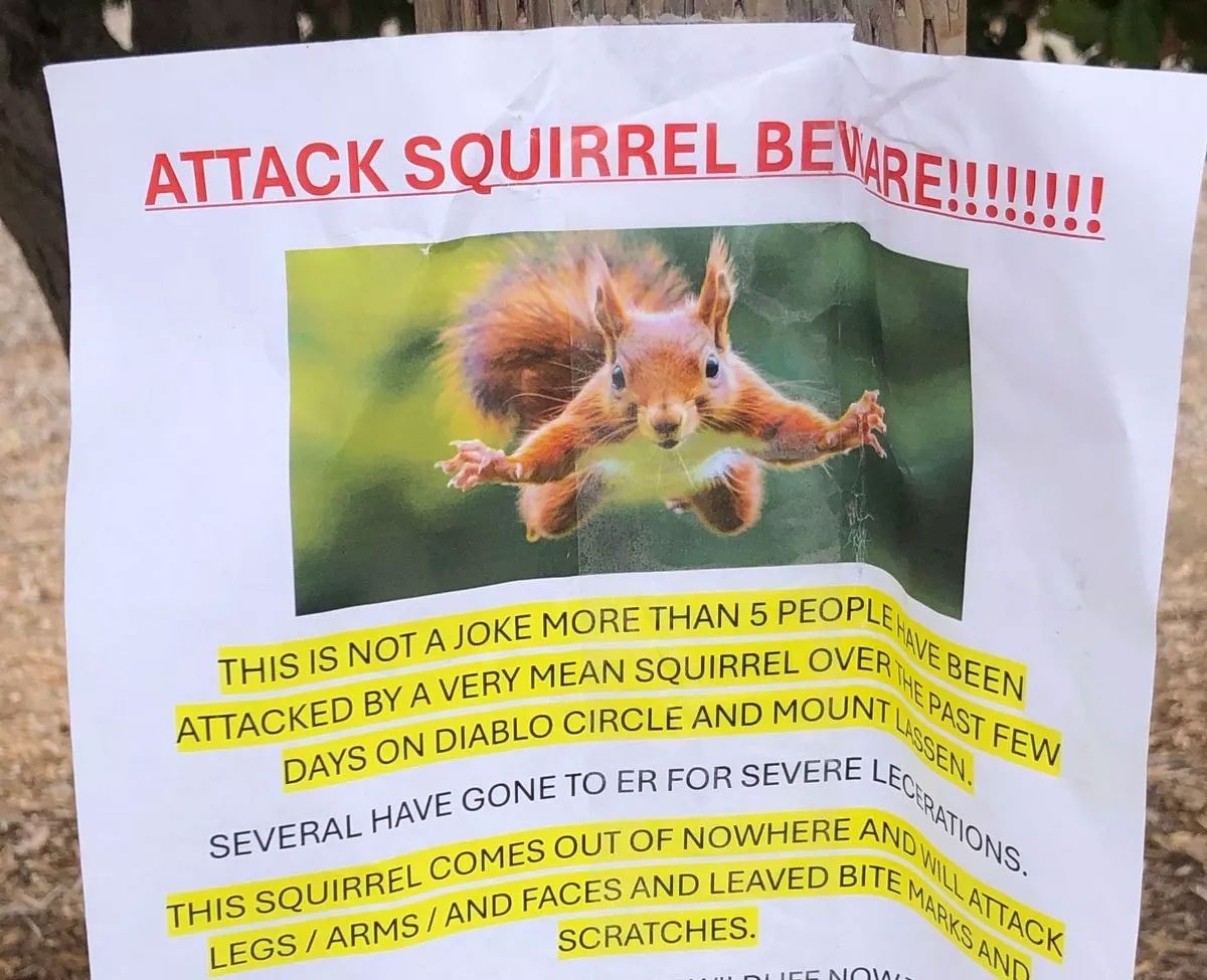 Bölgede şimdi ise uyarı afişleri asıldı. Saldırgan sincap, halk arasında “çok kötü huylu” ve “bir anda ortaya çıkan ninja sincap” olarak anılıyor.