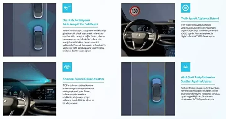 Otomobilde trafik işareti algılama sistemiyle birlikte çalışan dur-kalk fonksiyonlu akıllı adaptif hız sabitleyici ve akıllı şerit takip sistemi & şeritten ayrılma ikazı gibi özelliklerinin yanı sıra V2 donanım seviyesinde çevre görüş kamerası, kör nokta asistanı, sürücü dikkat asistanı, gelişmiş elektronik denge kontrolü gibi özellikleri standart, otomatik park asistanını ise opsiyon olarak yer alacak.